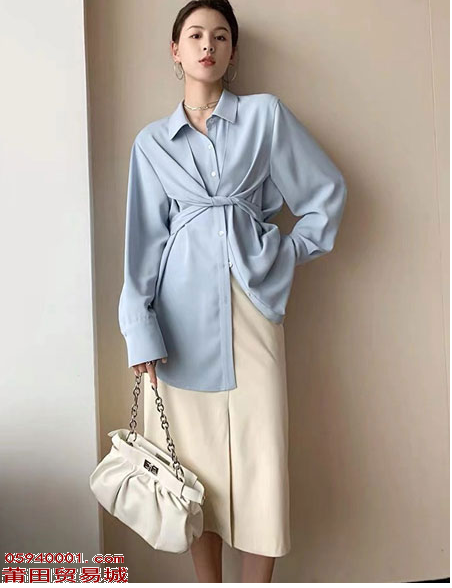 长款衬衫比较罕见,蓝色时尚又百搭,及腿的长度使它能够当做风衣来穿,凉意袭来的一早一晚能够套上一件,洒脱又御寒。最有目共睹的是腰间腰线的规划,独具匠心,充满创意,即使单穿也能完美显高。