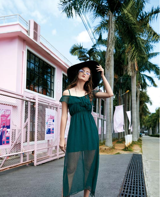 对啦,既然说了简约的白色,与火热的红色,那么,清新的墨绿色当然也需要“凑个热闹”。“欧娅铂”女装一款小性感的墨绿色裙装,露肩加上小V领的设计,让你的小性感展漏无疑。而下身则是一条墨绿色底衬,加上朦朦胧胧的薄纱,2分休闲、3分时尚、3分性感、2分清新的单品让你足够吸睛。