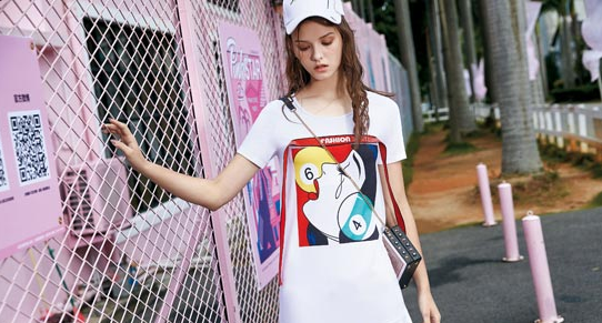 热情火热的夏日里,想要穿的清凉舒适,那么,一款简约舒适的T恤长衫当然不能缺少啦。而“欧娅铂”女装的这款T恤长衫当仁不让的是你的必选之品。它简约精致的剪裁,设计感十足百褶裙摆,加上趣味的印花,让你拥有舒适清爽的同时,也能不缺乏趣味时尚。