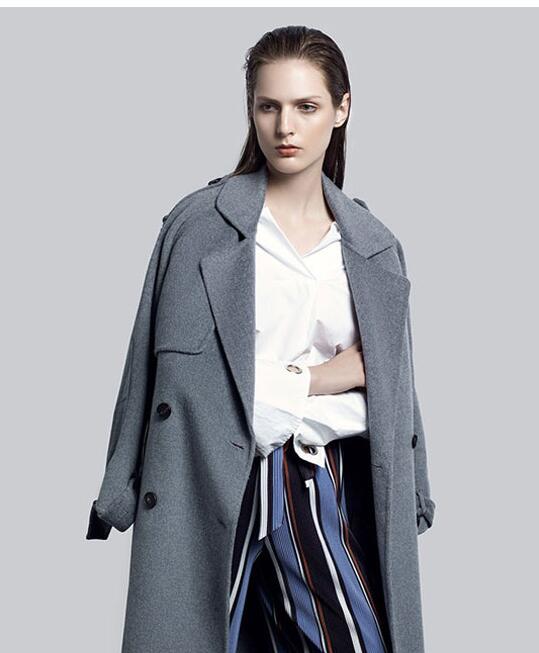 一件白色显露锁骨的宽松款型衬衫悄悄地就显露了性感的味道,蓝黑白相间的条纹宽松长裤展现随意不羁的态度,外面套一层十分有严肃感的毛呢大衣,两种风格搭配在一起有着别样的风情味道。