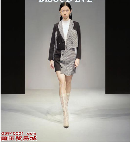 适合春夏穿着的淑女商务OL装,由黑色详尽布料与灰色粗面布料拼接而成,干练又有层次感。浓淡色彩,相间烘托,视觉更立体有型,刻画职场女人游刃有余的自在气场。