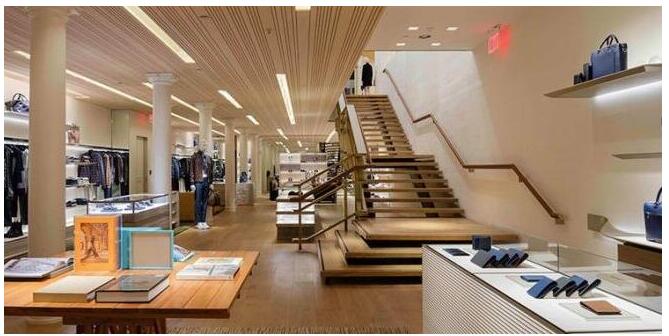 Peter Marino 的解说是,想要尽量让这家店肆和 SoHo 区的前史、文明以及修建个性相交融。洁净的店面,保存的即是 SoHo 区闻名的铸铁修建面貌,连遮挡住有些店面的消防梯也没有拆。