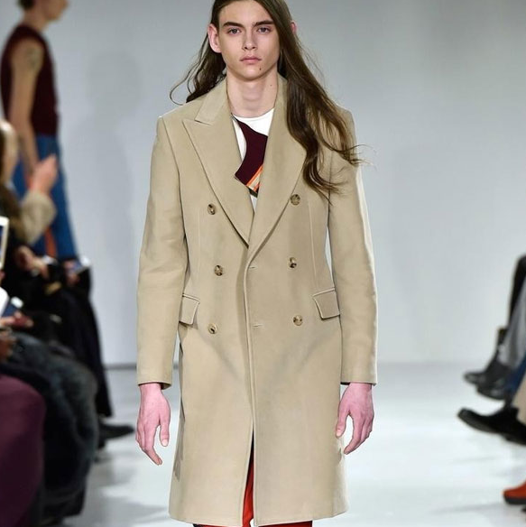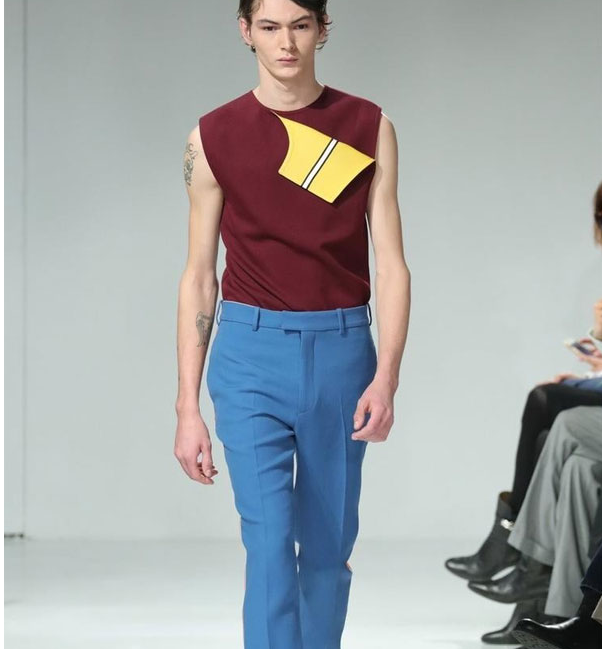 2月10日,CK在纽约发布了Raf Simons就任后的首个系列。虽然仍是经典的极简个性,看起来确实不太相同了,用上了红白蓝色,线条干净,廓形简略。另一个有个性的规划是在那些廓形硬挺的西装外套和皮草外套之外,做了通明原料的橡胶外衣。