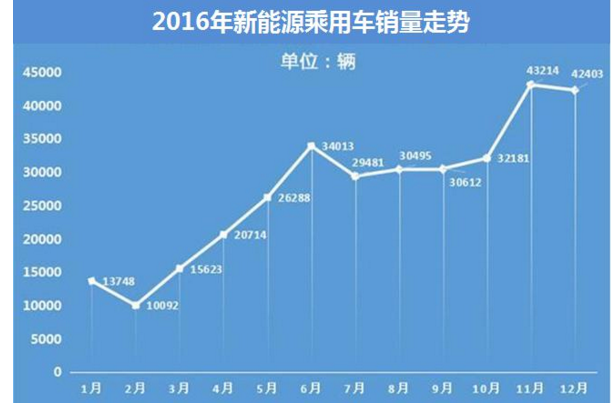 从历史数据来看,年头向来是新能源轿车出售的“冷季”,2016年开年也相同面临低谷期,但接下来的时间都坚持了较好的增长,并终究完结全年50万辆的成果。