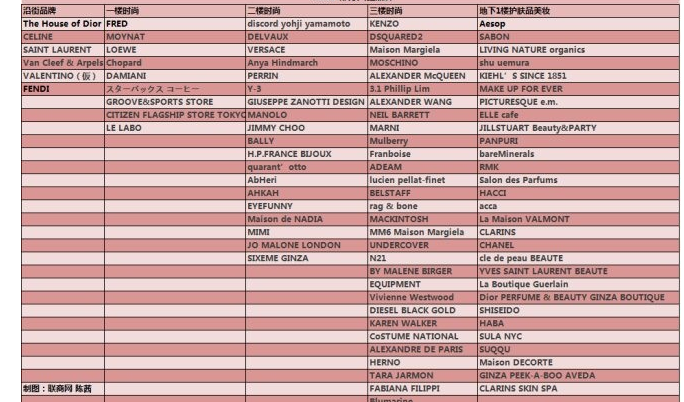 全部商场以地下6层,地上13层构成。2至6层为商业设备,7-12层为写字楼,其间地下3层是能乐舞台,1层是参观基地。共有241家品牌入驻,其间有122家旗舰店,11家日本首开店,4家国际最大级,81家银座首开店,34家日本最大级。