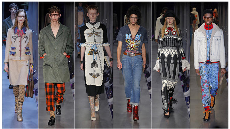 这是Gucci有史以来的第一场男女装混合秀,也是它在面积达37.7万平方英尺(约3.5万平方米)的米兰新总部里发布的第一场秀。在刚刚曩昔的2016财年的最终一个季度,构思总监Alessandro