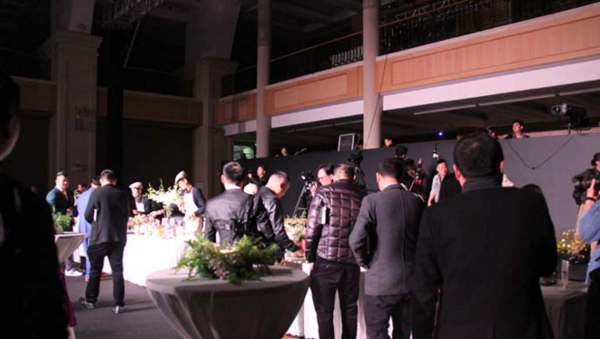 下午一点半,现已有很多的闻名服装代表、经销商以及20多家采访媒体报到入场,让人为之欢欣的即是除了精美的会场以外,还摆设着速品服饰的全体职工一同精心预备的美酒美食。