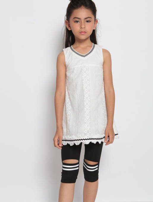 2017跟着春季的到来,新款就现已目不暇接了。蕾丝必是女人的独爱,连咱们的小女人也没放过哦。这款白色蕾丝斑纹上衣,让咱们心爱萌的女宝宝们穿上更是淑女范儿十足啦。v领无袖款会显得纯洁靓丽心爱萌萌哒,加上花衣角的润饰裁剪尽显咱们宝宝十足的魅力哦。