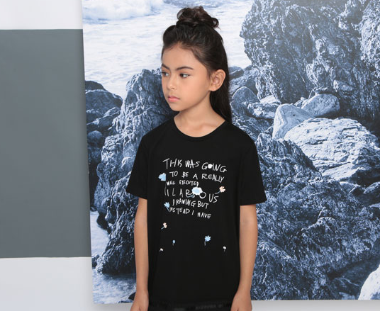 谁说女孩子穿黑T不好看?这款短袖黑T,可外穿,可打底。黑色摇滚风与奥秘黑纱的磕碰,胸前还有字母的装点,又显些带点幽默。经常被妈妈装扮穿粉色的女宝宝,偶然也能够测验一下这么酷酷的个性哦,下面调配上灰色打底裤,几乎帅爆了哦。出门一定是小帅哥们的焦点哦。