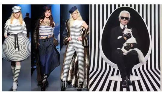 条纹作为时髦圈最具有生命力元素之一,与生具有的简略与特性,不管是在秀场上,仍是在街拍中,都是出镜率最高的单品。条纹衫最早起源于中世纪,跟着年代的变迁和价值观的多样化,条纹早已变成时髦界的宠儿,以其简练与百搭的特性奠定了其长盛不衰的盛行度。1917年Coco Chanel把它参加时髦词典,直至今天条纹已经变成服装界不可或缺的时髦元素。