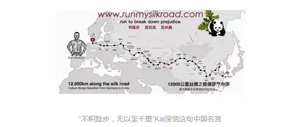 谈到这次豪举的动因,Kai表明:“在丝绸之路上从欧洲跑步到我国,这是前所未有的。我想经过这件事,让欧洲愈加了解我国。我国政府提出’一带一路’战略,我很认同,信任这对世界大有好处。世界经过共同发展战略增进沟通,就不再简单彼此坚持了。”