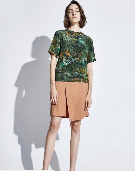 印花图案的单品在今夏掀起了穿搭热潮,Less女装品牌的这款绿色印花短袖,颜色清新自然,印花元素个性时尚。下身搭配一条半身裙,颜色低调耐看,版型简约大方,穿起来显气质。再搭配一双白色尖头高跟鞋,打造出了优雅显气质的造型!