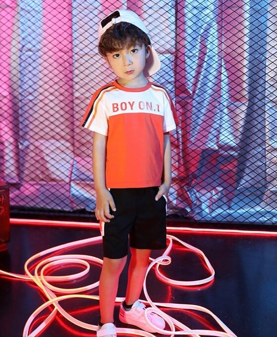 小男孩夏天需要一件红色短袖,红色显白又阳光,也是很百搭的一个颜色。这款T恤款式简单又很出挑,胸前的英文字母添了几分时尚感,下身的短裤的红色元素与T恤相呼应。衣服又薄又很好穿。搭配一双小白鞋和一顶棒球帽,特别适合出去游玩。潮范小男孩穿搭其实也可以很简单