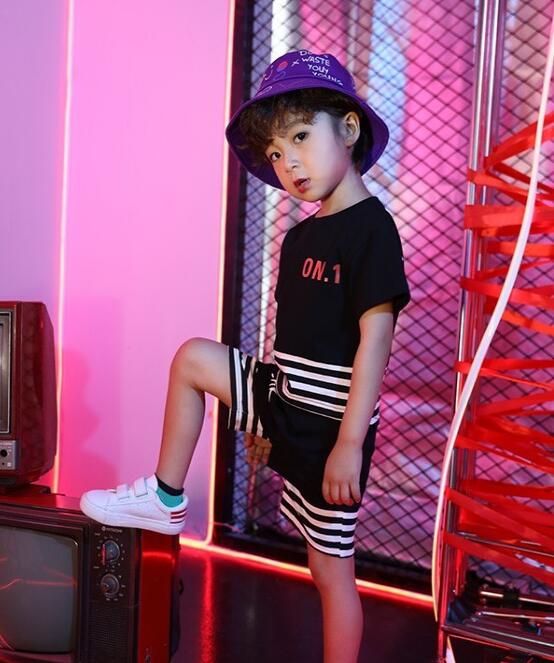 这款两件套装真的很实用又简单,省去了搭配的烦恼,什么场合都能穿。黑色t恤加上条纹的设计简单潮范。胸前的字母使搭配不单调。纯棉布料柔软亲肤,夏天穿很舒服不会闷热。搭配一双白色小板鞋就是一枚小潮男。