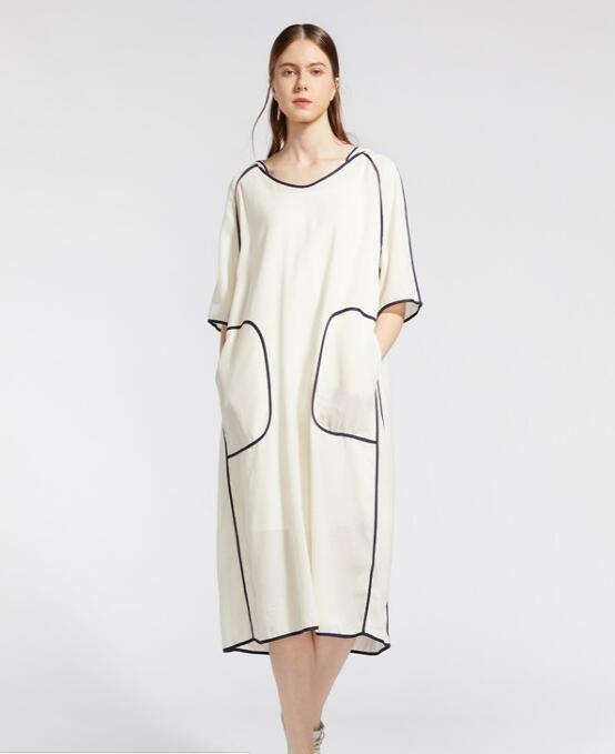 如果你想选择比较简单的款式可以来看看这款连衣裙哦。这件连衣裙采用拼接的手法制作而成,舒适的面料带来更好的体验感和舒适感,黑色条纹的点缀个这件纯白底色的连衣裙增添了一抹不一样的色彩,黑白的搭配永远是最经典的,休闲有简约,非常的凸显的气质,裙子下摆刚好到膝盖处,圆领的设计,让脸型看行更加显小,随性,慵懒的气质迸发而出。
