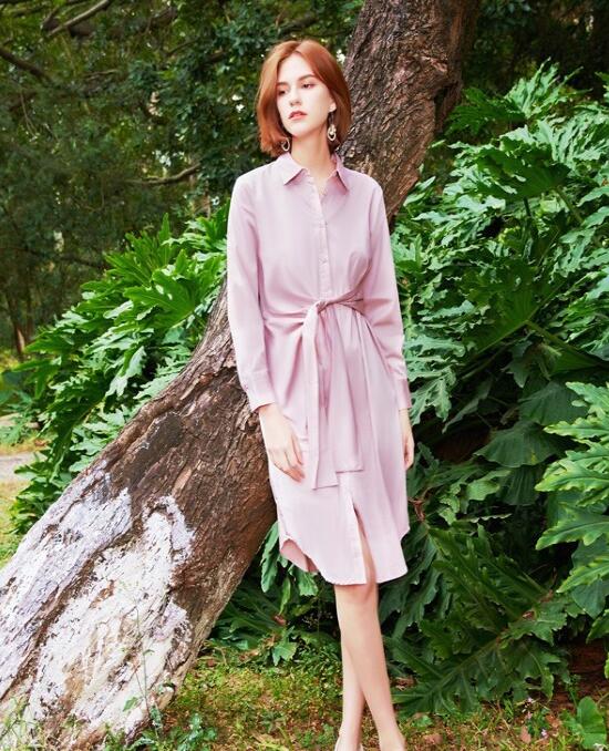 衬衣一直都是亘古不变的时尚穿搭单品,这件粉色的衬衣裙子一定能让你在众人中脱颖而出。樱花粉的配色,显得非常的温柔淑女,简单的设计和衬衣的结合,非常的高级。腰部有一个绑带的设计,收腰显瘦,裙子的下摆处是不规则的剪裁,很好看又很显细节。这件樱花粉的衬衣裙子很显肤色,不管是日常通勤穿还是休息娱乐,都是非常适合的,完全不挑场合。