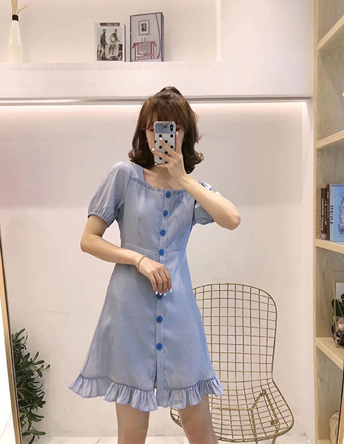 衬衫裙是一件很显气质的单品,在夏季出镜率也非常的高,女生可以为自己选择一件淡蓝色衬衫裙,颜色十分清新好看,半圆领设计突出颈部的完美曲线,高腰的设计更加凸显出苗条身型。