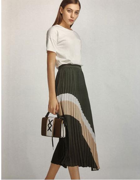 百搭的白T恤不只是可以搭配裤装,搭配半身长裙也可以很美。如图中纯色的白T搭配下身的撞色百褶长裙看起来优雅知性,简约大方的线条勾勒着美好的身形曲线,好身材一览无遗。简约的搭配让人感觉更加随性自然,散发着独有的魅力。