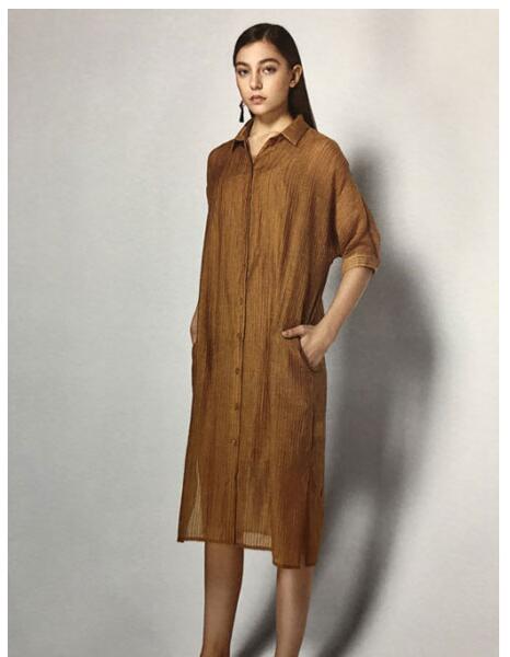 衬衫裙是集衬衫与裙的优点为一身的单品,可以说它的优雅与魅力,可以让你鱼和熊掌兼得。写梦这款褐色衬衫裙宽松的版型看起来简单大方,腰侧两边的口袋设计充满了人性化。搭配一条腰带还可以达到修身束腰的效果,又是另一种全新的风格。