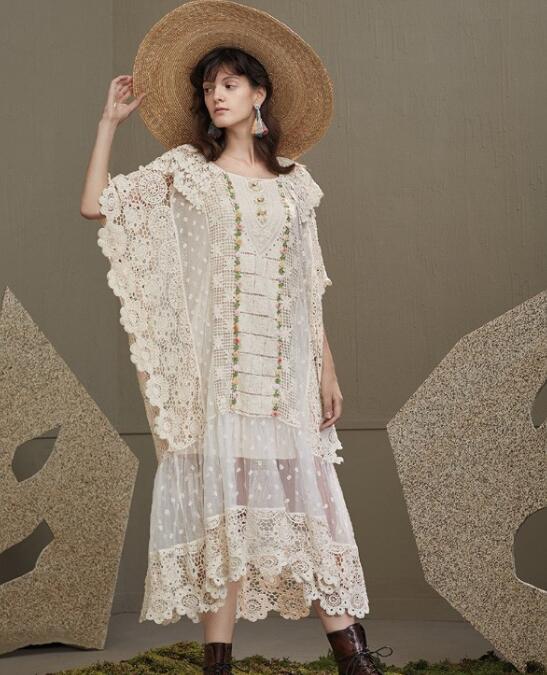 这款采用蕾丝勾勒而成的裙子,看起来甜美又优雅,圆领的设计简约大方,衣服上双排花朵的设计,看起来简约唯美,袖子的用蕾丝的花朵设计而成,这款连衣裙处处彰显出少女的甜美气息,宽松的版型不会带来闷热感,舒适清凉裙摆的设计真的很独特,整个裙子看起来别有一番风味,着独特的设计,彰显出设计师的用心。