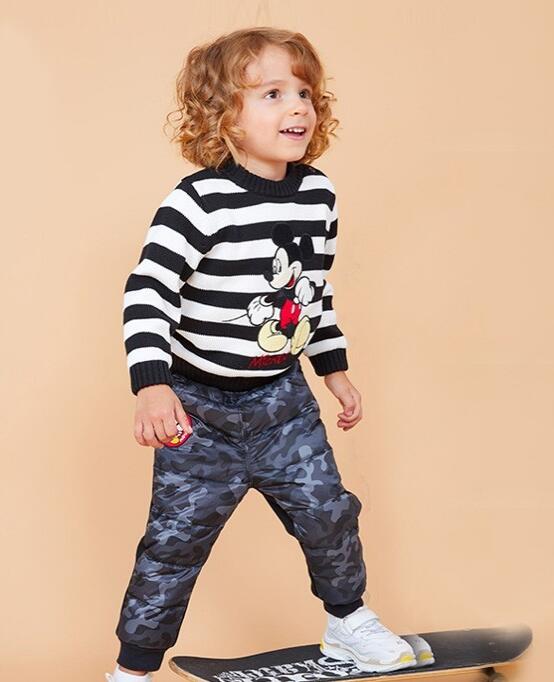 到了秋天,一些针织单品就会掀起穿搭热潮,保暖又时尚!莆田安福家园品牌的这款黑白条纹针织衫,配色经典耐看,条纹元素时尚经典,穿起来时尚大气。搭配一条迷彩元素的束脚裤,休闲有个性。搭配一双小白鞋,呈现出时尚感的童装造型!