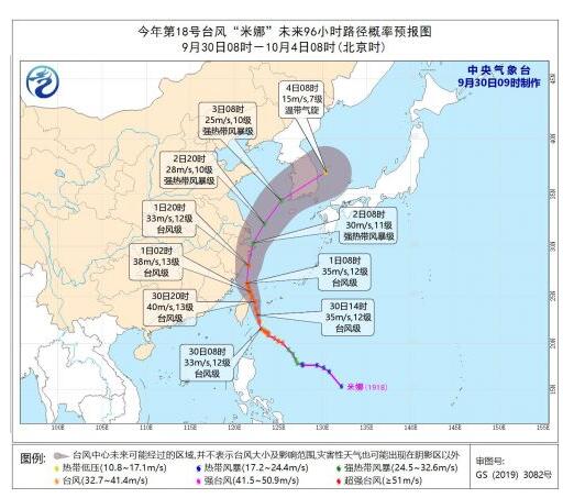 飓风“米娜”(MITAG)今日11时中心距离台湾省台北市南偏东方向约350公里(北纬22.2度、东经122.9度),近中心最大风力12级(35米/秒,飓风级),七级风圈半径220~300公里,十级风圈半径80公里,十二级风圈半径30公里。