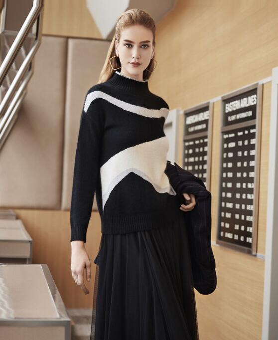这是一件欧根纱材质的小黑裙,非常的精致,而且纱质也很轻柔,裙子额垂坠感也是非常好的,很显质感。上面搭配的是一件黑白相间的毛衣,这样的搭配非常的和谐,不管是颜色还是款式的搭配,都给人一种浑然天成的感觉。外面还可以简单的搭配一件黑色的大衣,这样的搭配非常的高级。