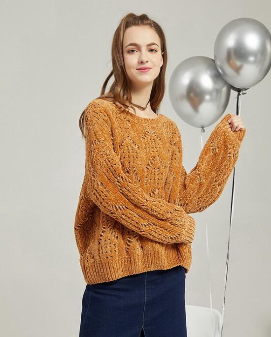 这款毛衣看起来暖和极了,这样的色彩看起来也很好看,圆领的设计简约大方,镂空的设计彰显出设计师的用心,宽松的版型穿在身上舒适不会感觉扎人,下身搭配一件黑色牛仔半身裙,这样得搭配真的很好看,而且这样的穿法在时下很流行,搭配一双高跟鞋,整体的造型简约优雅很显气质,这样的颜色也很温暖。