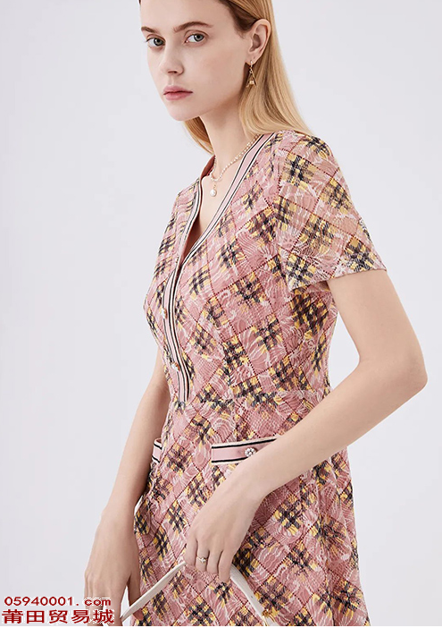 简约直筒的格纹的连衣裙,优雅时髦,七分袖和腰边设计,彰显份额,挺括的剪裁与流通的线条,让你活泼于聚会,尽情开释春日能量。