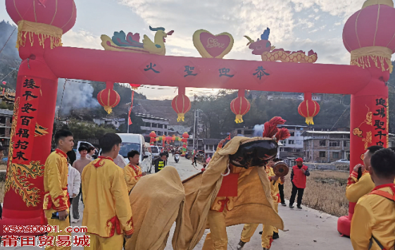 醒狮、鼓舞齐登场 山村庙会好热闹