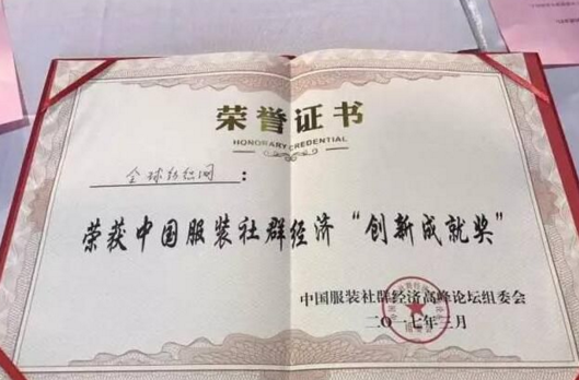 全球纺织网出席我国服装社群经济高峰论坛 获“创新成就奖”