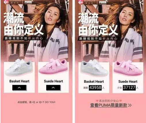 美图,尤其是潮自拍的用户大多是采购能力强、有时髦品尝、爱美的年青潮流女人。而puma的消费者也是酷爱时髦和运动、对日子赋有热情、走在年代潮流前沿的年青人,两者的品牌调性和方针受众的完美符合是本次成功协作的因素之一。