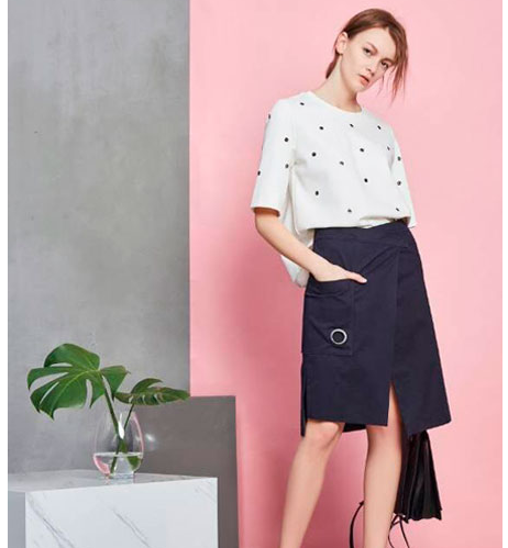 只需你有心,就算是根底款的T恤,也能带给你一个不一样的夏天。为T恤敞开颜色的盛宴,似乎彩虹通常斑驳,胸前则是时尚的印花,颜色简略却一点不凌乱,全体的颜色空气柔软而赋有田园新鲜气味,是对夸姣两字的最好诠释。再调配开叉半身裙,显露白嫩的双腿,生机少女的形象跃然而出。