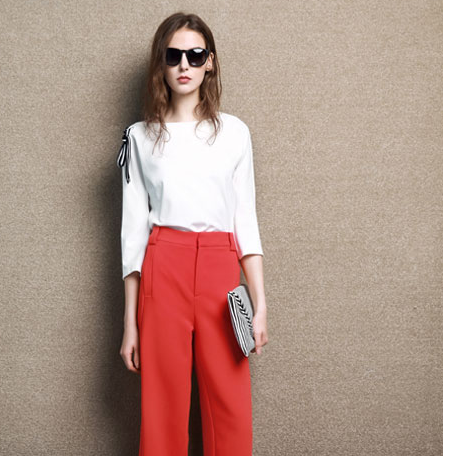 热烈的赤色总是格外招眼!赤色这一另人却是赏心悦目的颜色,在阴雨天里照旧显眼艳丽,火热的颜色股动工作环境与日子空气,让过度时节绝不单调!因而,上身穿戴白色圆领衬衣,下身调配着赤色七分休闲裤,全体个性显得热心洒脱。