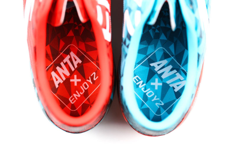 这一引人瞩目的鞋款选用现今足球鞋范畴大受欢迎的鸳鸯配色计划,双脚别离选用安踏红与ENJOYZ蓝的规划,标志两家的联手协作;每一只鞋的鞋底与鞋带也选用了与鞋面不一样的配色规划,更突显了这款鞋的独特感。后跟、大底上加入几何图形构成的雄狮图腾,代表安踏与ENJOYZ在各自范畴中的领导者位置。