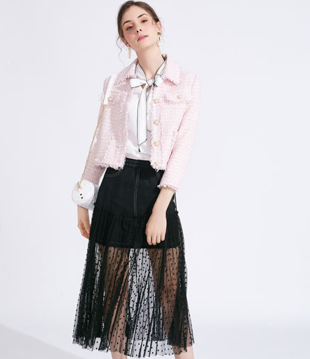 这款夹克外套把女人心爱的一面完全展示出来,粉色本就是心爱的杀手锏,通体的粉色那更是难以抗拒,毛边的规划,看上去向心爱的小动物一般,毛烘烘的。