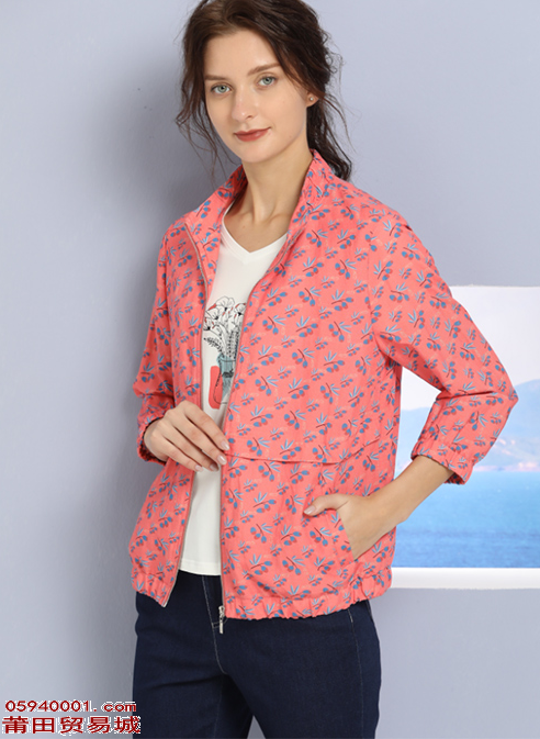茄克版型宽松舒适,清新印花图案面料,让全体不失庸俗且有规划感,更显休闲生动;