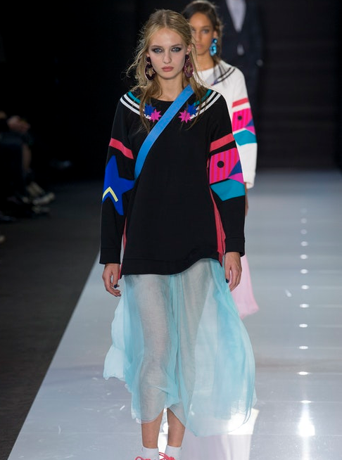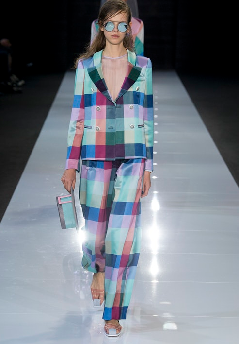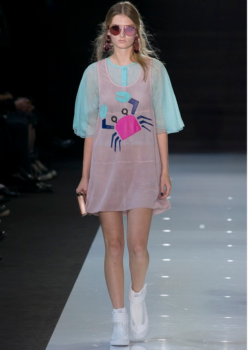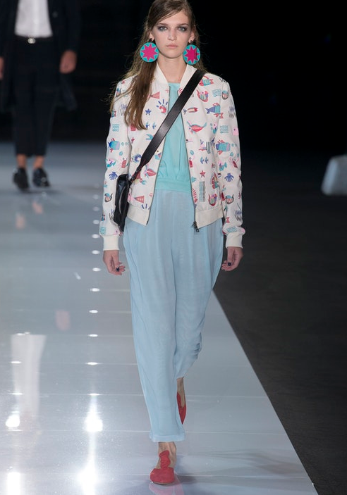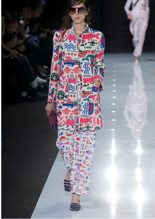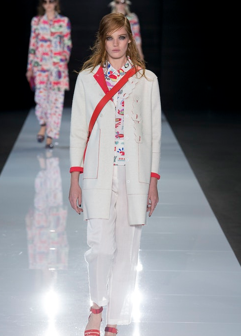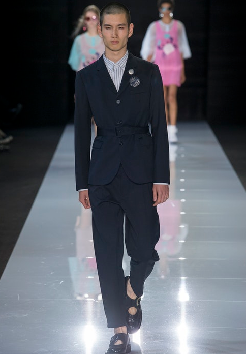 刚最初的时分实际上蛮有看头,从波普图形并逐渐进入浓密的提花图画。可是后来的螃蟹和河豚等等卡通图画实在太可爱了。你会天性地感觉到,这种策划将系列的优势关闭了起来(本季展现了100个造型!),不过Armani一贯大手笔的风格倒是有帮到忙,钻石往往在乱石围住之下更为闪烁。但在这里要找到钻石还得下一番功夫。就好比说男人的玛丽珍鞋是最亮眼的单品吗?Armani仍然有能力将普通无奇的东西变得不一样?仍是说没有谁比他把海军蓝这一色彩做得更好了?在这场秀上,一切都太轻盈了,无论是风格仍是服装自身,轻得能够飘走。或许这就是一种重生吧,但必定不是Armani本人所期望的那一种。
