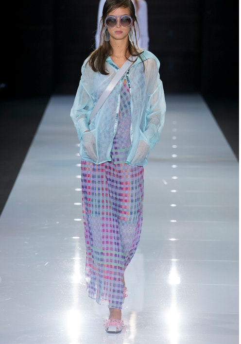所以在这样的场景下,有这么多重生能量,但系列自身却没能发生任何光环效应,这简直是一种耻辱。秀场设在坐落伦敦东区的烟草码头(Tobacco Wharf)库房。曾经这些元素都会与EA系列联络在一起,就像其杂志之前清楚展现的那样——一直以来都与那些勇敢无畏的男人与女性的冒险有关。可是本季乃至没有一丝粗粝感(嗯,可能有点儿吧,男人们能够穿那件“沙漠之鼠”派克戎衣大衣,女孩能够要那件红皮夹克)。这是一切半透明的粉红色、淡紫色、绿松石色雪纺,盖袖规划以及少女感的低腰线,和少年气质西装的镇定情绪。