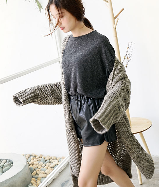 微凉的秋天,穿上一件精约舒适的深灰色休闲针织上衣调配一条时髦特性的黑色短裤,脚踩一双白色休闲鞋,显得肌肤愈加白净,外搭一条浅棕绿色针织开衫外套,温度与风姿得兼~~