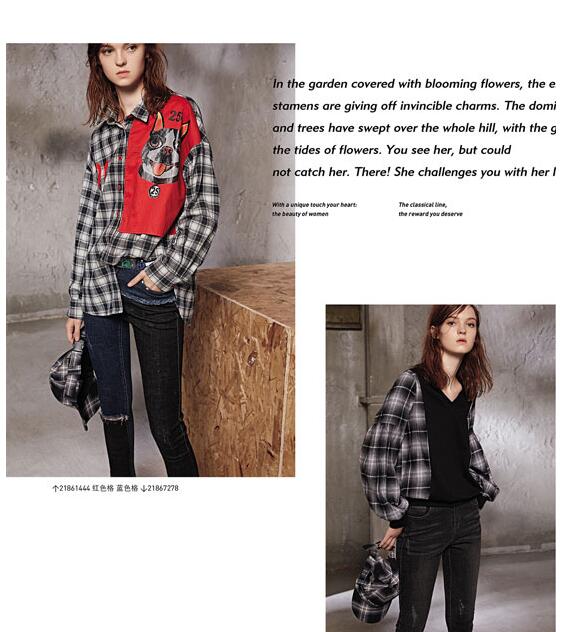 格子外套作为中性穿搭中的“一霸”,小姐姐们一定要get一件,红色与黑白格纹的碰撞,加上大大的小狗图案,简单帅气中又不失童趣。