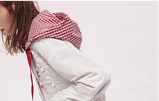 一件衣服不仅仅要追求美观,除此之外有趣有料才会加分,红白格子的温柔品行只有在白色的气质上,以拼接的方式放肆呈现活力感,宽宽的红色抽带街头感十足,前襟的镂空钩花的点缀别有心意,整体显露帅气感之余不失趣味新奇。