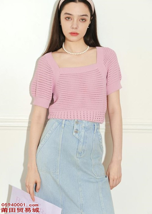 特殊原料的粉色镂空针织上衣,十分透气舒适,方领规划为这件纯色的针织上衣带来了法式的优雅神韵,调配一条浅蓝色的牛仔半身裙,经典粉蓝调配愈加少女又芳华。