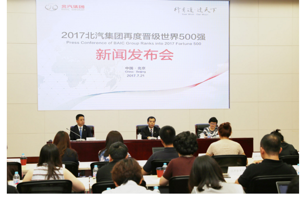 图:北汽集团以611.3亿美元营收位列“2017年国际500强公司”第137位,比上一年度提高23位\大公报摄