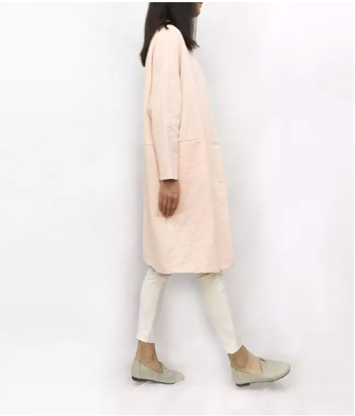 廓形不易变形,柔软有型,品尝细节,提花双层衬衣里层提花外层轻薄苎麻面料的结合,精约的衣身规划,不同面料的拼撞,舒适又飘逸。