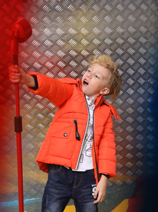 潮爸潮妈们总认为自家的小小少年要扮酷,单品颜色肯定非黑白灰莫属,其实亮色系也不失为一个好的选择。土巴兔这件橘红色的短款棉服,在颜色上就十分的时髦吸睛了,搭配衬衫和黑色牛仔裤,小少年的酷帅气质都快溢出屏幕啦!